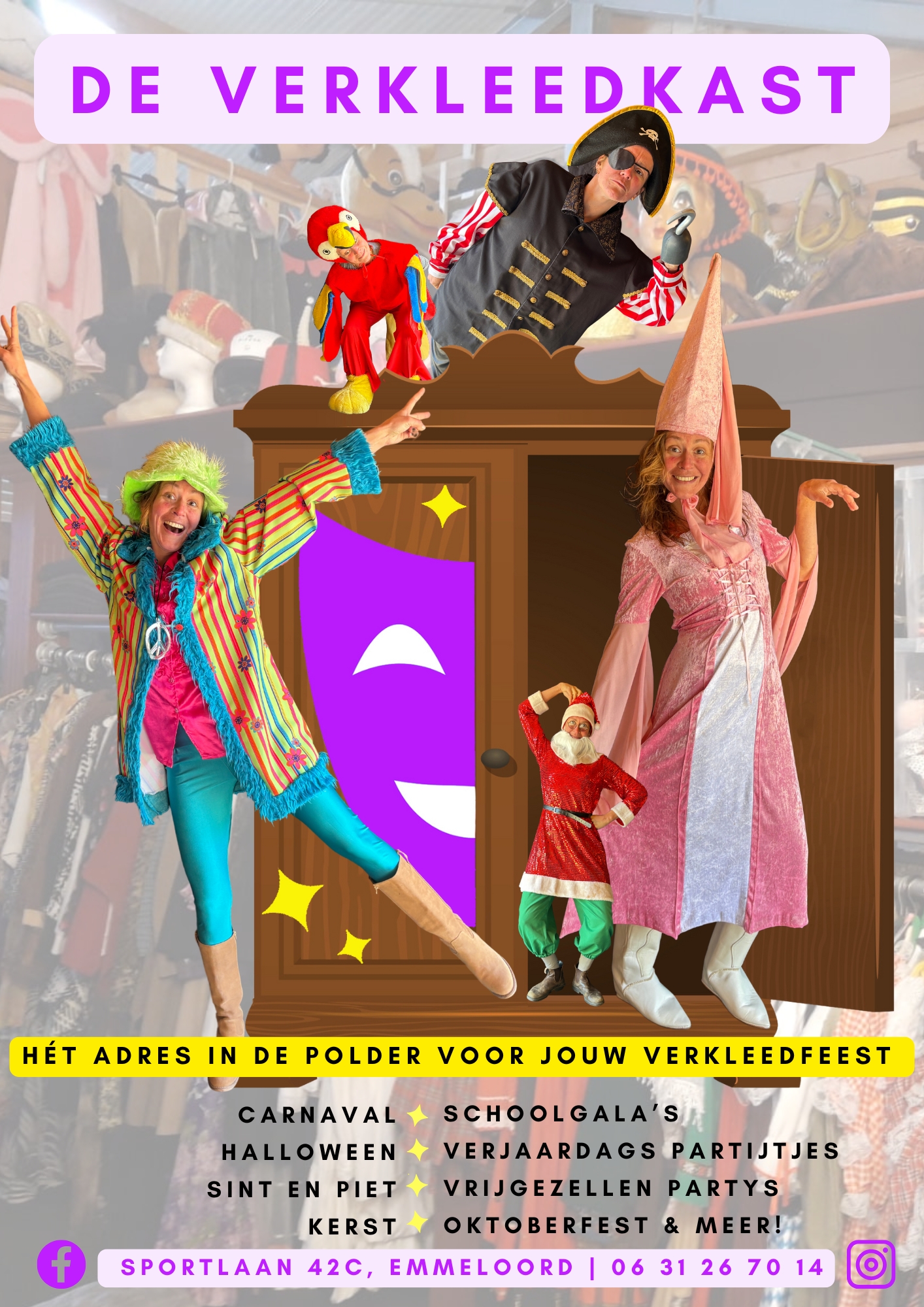 Bij De Verkleedkast vind je een uitgebreide collectie aan feestkleding voor elke gelegenheid. Of je nu op zoek bent naar een leuk kostuum voor een themafeest, een elegante outfit voor een gala of iets unieks voor een speciale viering, het hangt allemaal in de kast. Onze missie is om jouw feest onvergetelijk te maken met de perfecte outfit.